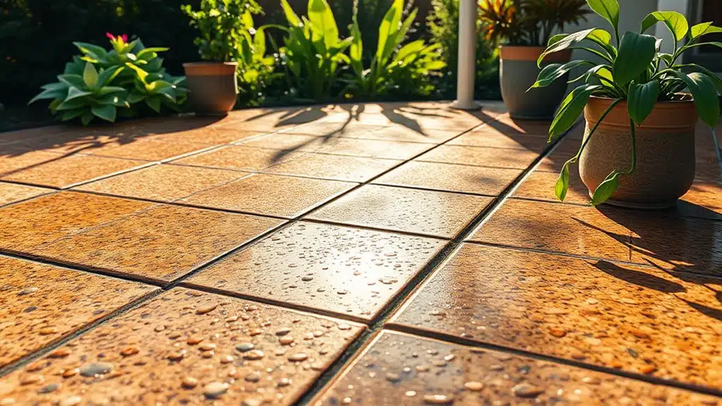 The installation of a resin bound patio involves several essential steps to ensure a lasting, attractive finish. Surface preparation comes first. Clean and level the ground thoroughly, mending any cracks. For concrete bases, use a primer to boost adhesion. The base must be at least 75mm deep for tarmac and 125mm for concrete. Choose a location with proper sunlight and drainage for best results. The permeable surface of resin patios helps to reduce flooding and puddling issues, enhancing the overall functionality of the installation. A well-prepared base also aids in ideal bonding between the resin and aggregate.